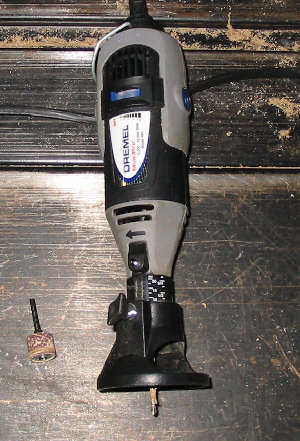 Next to the dremel is the sanding wheel bit. I used the fine bit at the slowest speed.