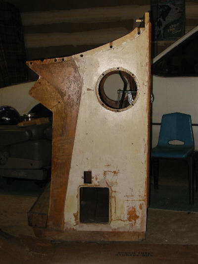 Gouges and missing wood have been filled in with Bondo and the delaminating