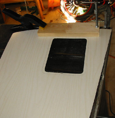 a hole large enough for the laminate trimming bit to fit through. Next the opening was